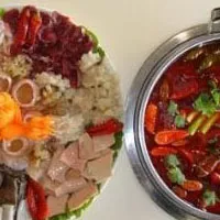 3.精鹽、牛油、味精同時上桌。葷素原料隨吃隨燙,并根據(jù)湯味濃淡適量加入精鹽和牛油,上桌時將辣椒酥料分別在味碟中,每一食者備一碟,以供酥食。