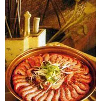 桑拿蝦 四川 ? 涼山州 ? 喜德 該菜選用邛海優(yōu)質(zhì)大蝦,盛放于特制餐具中,再將鵝卵石燒紅,置于特制餐具之下,注入冷水,高溫石頭遇冷水產(chǎn)生大量蒸汽,將大蝦汽熟,配麻辣、魚香、姜汁、椒麻四個味碟即成。此菜烹制獨特,色澤彤紅,蝦鮮肉嫩,味型多樣,擇喜而從,原汁原味,清爽宜人。( 涼山) 贊 (0) 39 151 生成海報 彝家辣子雞 下一篇 0001-01-01 素?zé)竽_菇 上一篇 0001-01-01 相關(guān)推薦