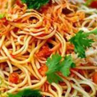 新疆涼面又叫黃面,因其色黃而得名,維吾爾語(yǔ)叫“賽熱克阿?!?,屬夏令風(fēng)味小吃。面中有一主要原料叫蓬灰,蓬灰來(lái)源于戈壁上的“臭蓬蒿”,這是一種野生植物。秋季來(lái)到,人們把蓬蒿收集起來(lái),放進(jìn)坑中燒。蓬蒿流出的水汁冷卻后會(huì)凝結(jié)成塊,這便是蓬灰。制作涼面時(shí):先用淡鹽水、土堿水和面,加入蓬灰水,邊加邊拉,揉到面團(tuán)柔軟光滑有拉力時(shí)即可,然后放在案板上餳。氫菜葫蘆去皮,掏籽、切絲、菠菜、芹菜切段。把面拉成細(xì)條下鍋,煮熟后撈出,過(guò)兩次涼水,淋少許清油拌開(kāi)。把炒勺中的水燒開(kāi),下菜葫蘆煮熟,加鹽,打雞蛋花,下菠菜,加濕淀粉勾成芡成鹵汁。芹菜段入油鍋炸熟,分別把油辣椒粉、鞭泥、芝麻醬用游泳水稀釋。吃時(shí)涼面盛于盤中,澆鹵汁,放醋、蒜、油辣椒、芝麻醬,再放芹菜段。面柔軟而有筋感,拌料酸中帶有辣香。( 吐魯番)