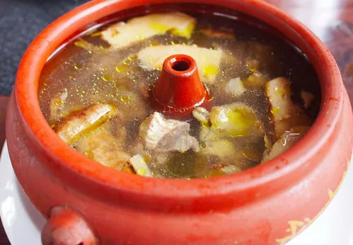 汽鍋雞是云南最有名的特色菜之一,也是云南最具代表性的傳統(tǒng)名菜,早在200多年前就在滇南民間流傳,因該菜品用汽鍋蒸制而得名,屬于滇菜系。汽鍋雞選料非常講究,汽鍋要用土陶汽鍋,雞要選本地土雞,由于湯汁是蒸汽凝成,雞肉的鮮味在蒸的過程中喪失較少,基本上保持了雞的原汁原味,這樣蒸出來的雞肉色澤金黃鮮亮、肉質鮮嫩、雞湯清澈透明、湯汁鮮美,口感上入口即化,滋嫩鮮香。汽鍋雞被中國烹飪協(xié)會評選為“中國菜”之云南十大經(jīng)典名菜,被云南省餐飲與美食行業(yè)協(xié)會評選為“昆明市十大名菜”,還是國宴一道名菜。除了昆明的汽鍋雞外,文山州的