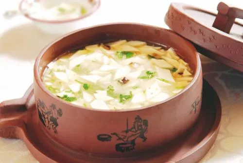 平橋豆腐 平橋豆腐是最著名的豆腐料理之一,是江蘇省淮安市的一道名菜,屬于淮揚(yáng)菜,該菜品作為淮揚(yáng)菜系的扛鼎之作,其選用內(nèi)脂豆腐,將其切成一致的菱形小塊,配以雞肉丁、香菇丁、香菜沫,用鯽魚腦起鮮,因其起鍋時(shí)淋了一層明油看似不冒熱氣,其實(shí)很燙,一定要小心慢用。平橋豆腐經(jīng)濟(jì)實(shí)惠,美味可口,食而不膩,清素入肺,小編提示:成菜上桌后略帶油脂看似不冒熱氣,其實(shí)很燙,需吹后食之,小心慢用。【詳細(xì)】中文名:平橋豆腐分類:淮揚(yáng)菜口味:鮮香可口主要食材:內(nèi)脂豆腐,雞肉,香菇,香菜,鯽魚等特點(diǎn):經(jīng)濟(jì)實(shí)惠,美味可口流行地區(qū):江蘇·淮安 贊 (0) 39 151 生成海報(bào) 一品豆腐 下一篇 2008-08-08 蟹黃豆腐 上一篇 2008-08-08 相關(guān)推薦