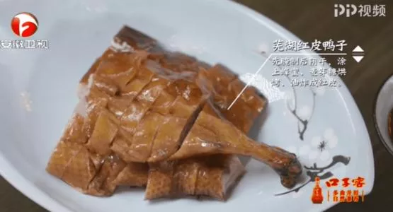 蕪湖紅皮鴨是蕪湖一道色香味俱全的傳統(tǒng)名菜,屬于徽菜系中的沿江風(fēng)味,在蕪湖可謂家喻戶曉。此菜鴨子金黃里透著紅,脆而不酥,入口即化。將烤好的鴨子用刀片成一指寬的帶皮鴨片;用煨鴨子的湯,加糖和醋以及特制香料放在鍋里,熬制成甜鮮的鹵,將鴨肉片蘸著鹵吃。熱油煎炸而成的紅皮鴨,色澤鮮紅油亮,皮脆肉酥,肥瘦適中。那烤得半脆的紅皮是多數(shù)人的最愛,包含蜂蜜的鹵汁浸透鴨皮后,在炭火烤制下結(jié)合油脂所產(chǎn)生的蜜汁脆皮,一咬之下脂香盈口,微甜醬汁的口感更是帶出一股無以名狀的鮮味。