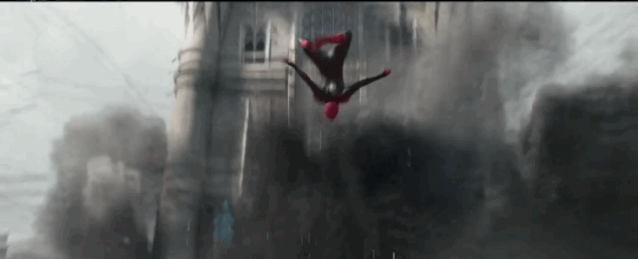 在最終大戰(zhàn)來臨之前,彼得·帕克就不斷經(jīng)歷著這種被動式切換。被迫進(jìn)入一項(xiàng)必須去完成的工作,又想辦法迅速回歸想要的生活。當(dāng)他終于把拯救世界的任務(wù)交給了他認(rèn)為值得信賴的神秘客(杰克·吉倫哈爾的角色 ),一切似乎都回到了正軌。