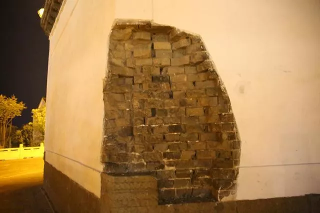 塔身底部曾在抗日戰(zhàn)期間被日寇飛機(jī)炸毀一角墻腳,維修仍然留著這塊“傷疤”,我想,是讓人們記住這段歷史。